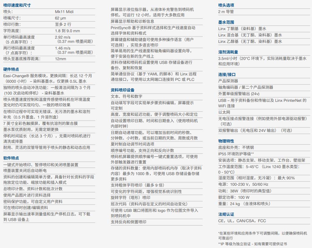 操作簡單,無錯噴碼快速、簡單的噴碼設(shè)置和選擇,可輕松更改資料,實現(xiàn)快速編輯一鍵式訪問常用功能噴印過程中可一鍵補充液盒,操作簡單,無污漬、無需工具、無錯誤總擁有成本較低維護間隔長達 12 個月,可使用多種 Linx 墨水噴頭清潔間隔長達 3 個月,停機時間減少,耗材消耗量低墨水和過濾器獨立更換設(shè)計,從而能夠有效降低維修成本運行穩(wěn)定,生產(chǎn)力顯著提高特殊的噴頭封裝設(shè)計可保護重要元件免受物理損傷,經(jīng)久耐用8 小時噴印耗材儲備可減少因耗材用盡而導致的產(chǎn)線停工反應(yīng)靈敏的彩色觸摸屏,無懼惡劣的生產(chǎn)環(huán)境Linx 8810 操作簡單,可滿足多種噴碼需求,具備極高的運行可靠性和用戶友好性。Linx 8810 的噴頭采用特殊封裝設(shè)計,不銹鋼構(gòu)造堅固耐用,可在惡劣的生產(chǎn)環(huán)境中可靠運行,同時有效地降低了維護成本。從設(shè)置到維護,該型號的噴碼機簡單易用、運行高效,降低了總體擁有成本,優(yōu)化了生產(chǎn)線的生產(chǎn)效率。